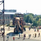 Nach unserem üblichen Frühstück machten wir uns auf den Weg nach Nantes um uns die verrückten „Maschinen“ von „Les Machines De Lile“ anzusehen. Hier gibt es verschiedene Konstruktionen zu bestaunen und im Karussell auch zu befahren. Das Karussell war für uns alle sehr interessant, da es hier auf 3 Ebenen eine Vielzahl unterschiedlicher Kreaturen gab in denen man seine Runden drehen konnte. Das eigentliche Highlight war aber der Elefant, der sich auf dem Platz zwischen Karussell und Ausstellung hin und her bewegt. Besonderen Spaß hatten die Kinder wenn sie vom Rüssel des Riesen mit Wasser bespritzt wurden. Das war bei ca. 35° C eine willkommene Erfrischung. Von der Ausstellung hatten wir uns aber etwas mehr erwartet. Da die Temperaturen für unseren Geschmack mal wieder zu hoch waren und wir kein Eis mehr essen wollten, machten wir uns auf die Suche nach einem Stellplatz für die Nacht. Einige Absagen später war er dann gefunden. Ein Campingplatz an der Loire, ruhig gelegen und für uns das erste Mal mit Toilettenbrillen auf der „Keramikschüssel“!👍 Diese bei uns doch sehr gebräuchlichen Sitzhilfen scheinen die Franzosen nicht zu mögen, weshalb sie auf allen Campingplätzen, auf denen wir bisher in Frankreich waren, abgerissen wurden.🤷♂️ Bei unserer Ankunft trafen wir auf zwei Food Trucks die Wein der Region, frische Crepe und Galette (die herzhafte Version) feilboten. Damit war auch die Abendbrotplanung direkt verworfen und wir gönnten uns die einheimischen Leckereien. Genüsslich in der Abendsonne sitzend beschlossen dann auch für zwei Nächte zu bleiben und den morgigen Tag auf dem Fahrrad zu verbringen. Aber davon später mehr.