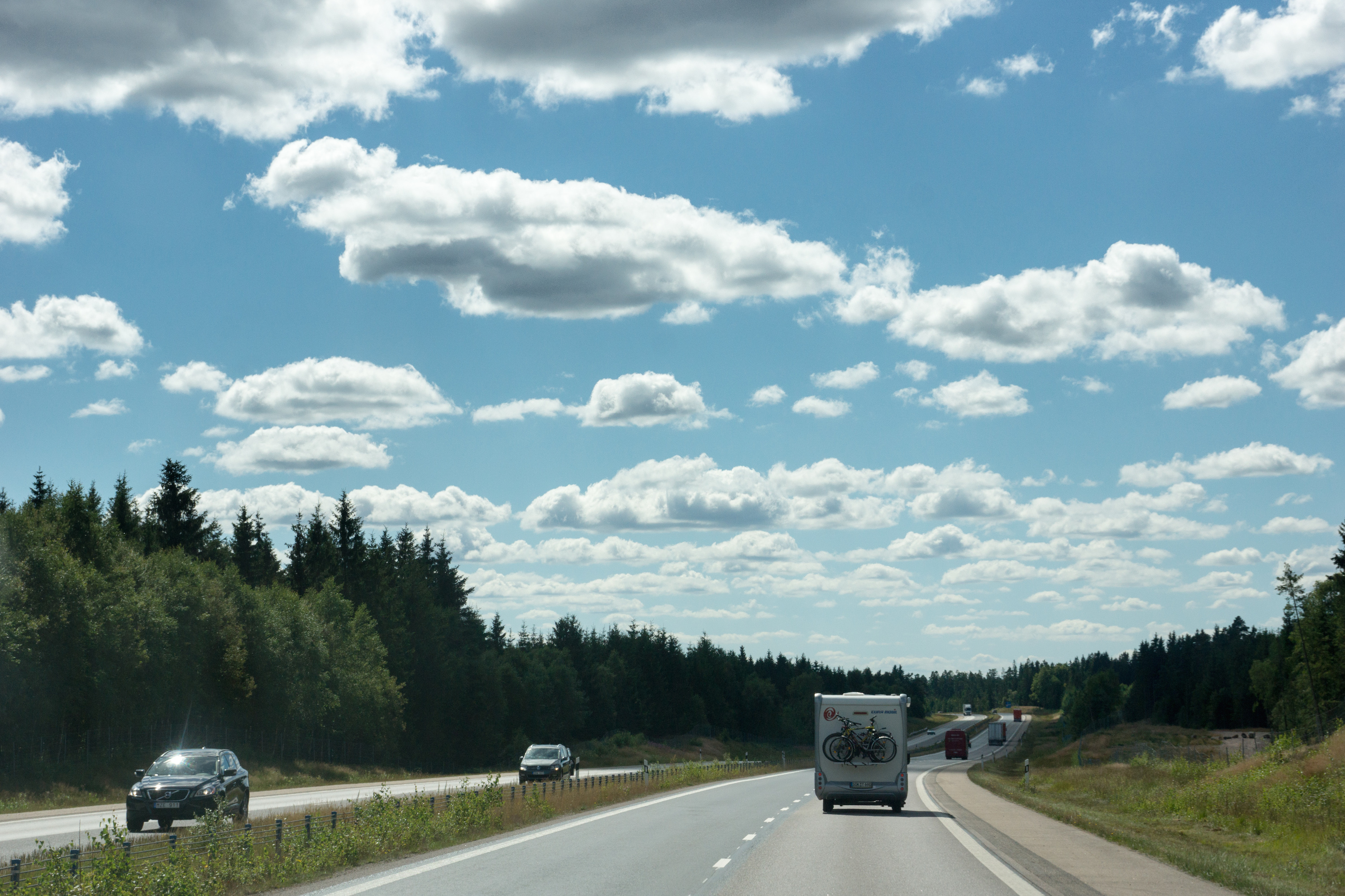 Der Morgen in Schweden war wieder sonnig und der Wind wehte wie gestern. Unsere Fähre sollte 15 Uhr ablegen und so hatten wir heute keine Eile. Die Mädels bereiteten das Begleitfahrzeuge für die Fährfahrt und die Übergabe am Sonnabend vor, die Großen kümmerten sich um den Abwasch und ich drehte mit den Kleinen eine Runde auf der Suche nach zwei Geocaches um den Campingplatz.