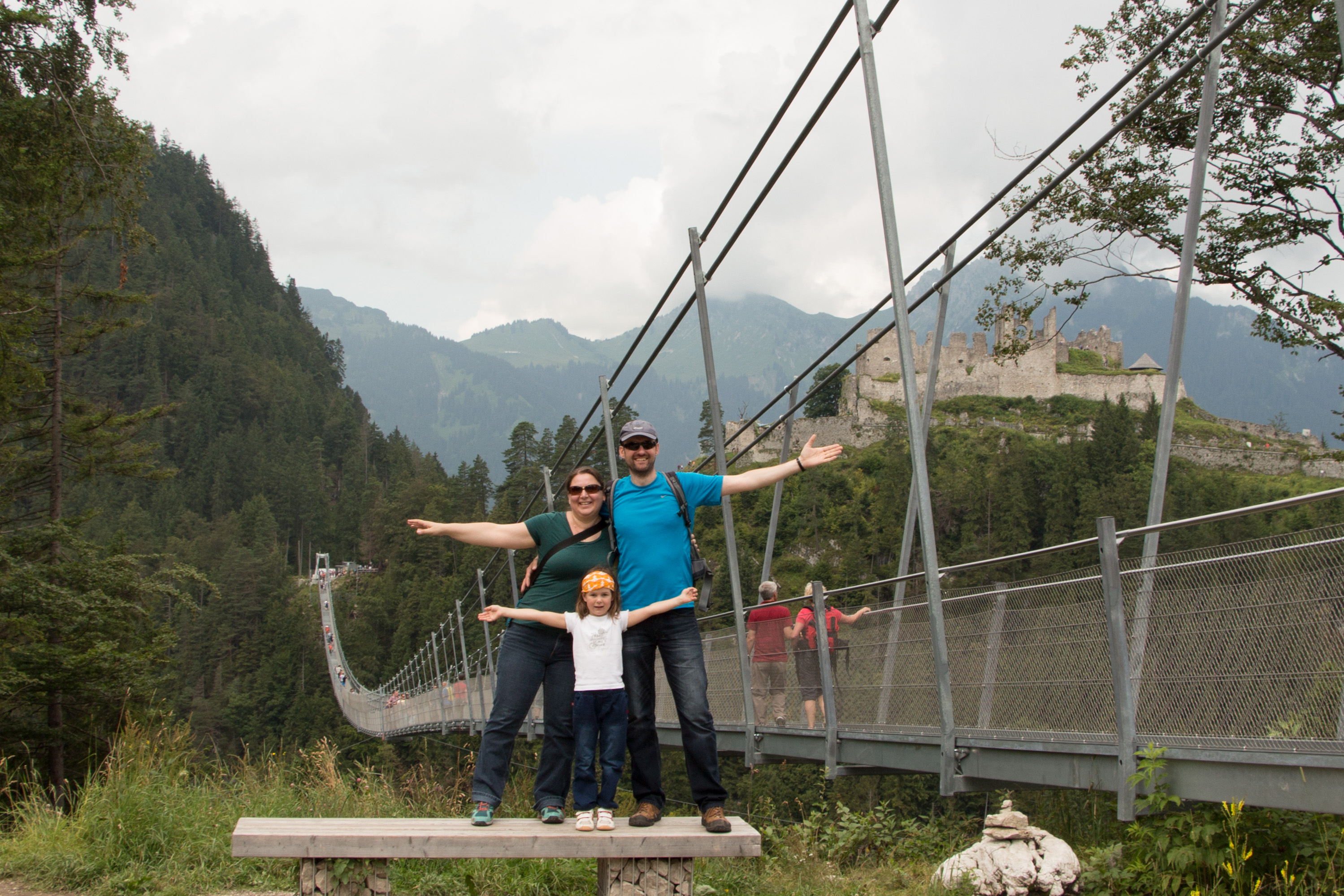 Entgegen der Prognosen zeigte sich das Wetter heute morgen von seiner besten Seite, Sonnenschein und warme Luft. Somit war für uns schnell klar, heute gehts auf die Burg und die Brücke. Die Burg Ehrenberg liegt oberhalb von Reutte. Nach dem Aufstieg aus dem Tal haben wir uns zu erst auf die „längste Fußgängerhängebrücke der Welt im Tibet Style“ gewagt. In ca 115 Metern Höhe haben wir das Tal überquert. Durch den Wind und die zahlreichen anderen Touristen hier oben, gab es auch deutlich spürbare Schwingungen die einige sichtbar das fürchten lehrte. 😱 Und so gab es Besucher die für den Rückweg eine andere Route wählten und die Brücke nicht wieder betreten wollten. Wir zeigten Mut und waren kurze Zeit später wieder zurück an der Ruine Ehrenberg die wir ausgiebig erkundet haben.