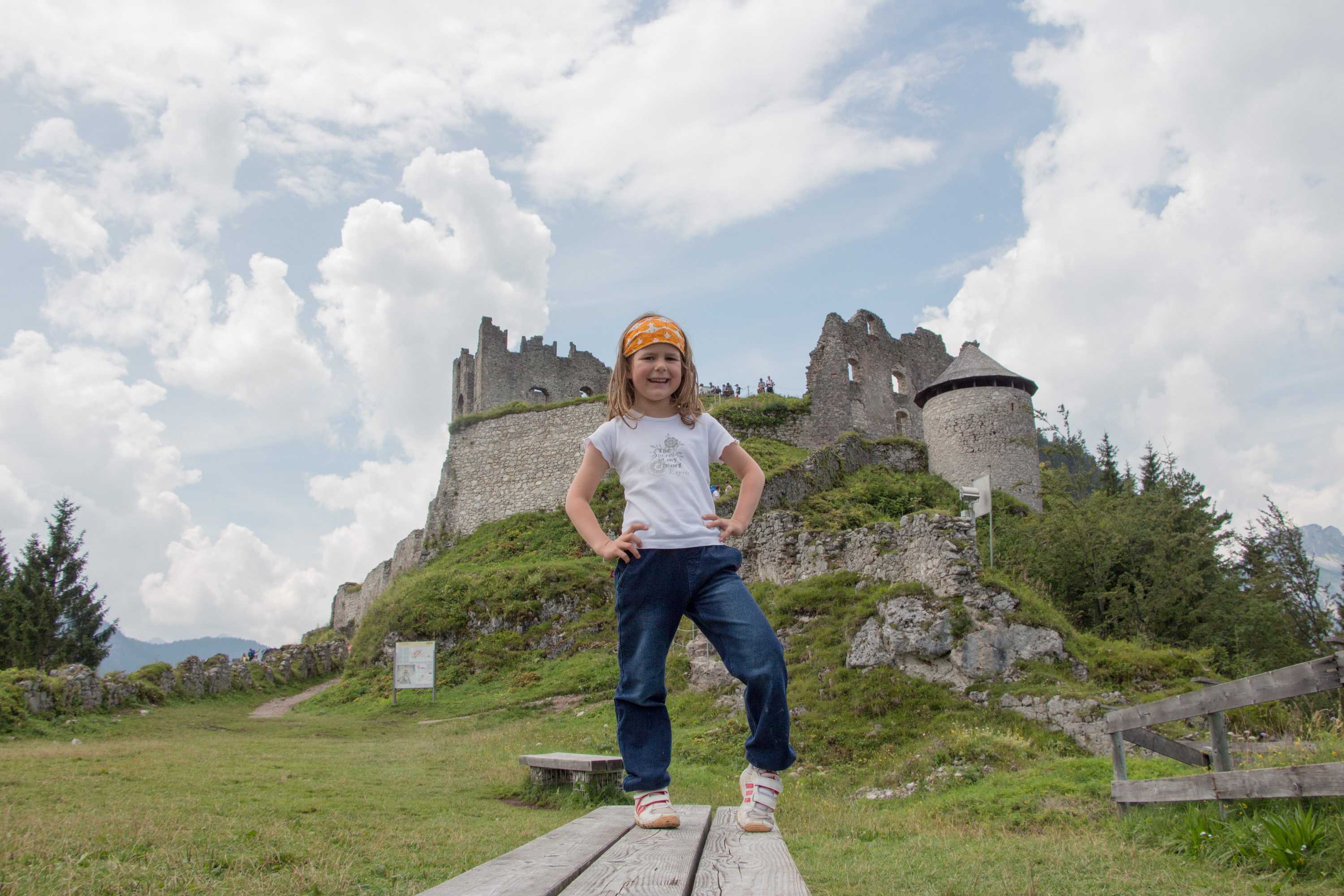 Ca. 1,5 Stunden später waren wir in der Zeit noch weiter zurück gereist und fanden uns im Mittelalter wieder. In Reutte an der Burg Ehrenberg begann heute das „größte Mittelalter-Spektakel“ Europas die „Ritterspiele Ehrenberg„. Eine bunte Mischung von Epochen sind hier für ein ganzes Wochenende zu bewundern. Mit Soldaten der alten Römern bis zu Rittern des Mittelalters, sowie Vertreter der Renaissance mit Tanz und Gesang. Historische Schlachten, Ritterturniere, Gaukler, Kunsthandwerk und natürlich viel Kulinarisches konnte man hier bestaunen und probieren. Die Kinder waren hier auch auf ihrem ersten „Heavy Metal“-Konzert. Cultus Ferox spielt laute und harte Rock Musik mit teils altertümlichen Instrumenten. Alle waren begeistert und so viel es den Kleinen schwer sich kurz vor Sonnenuntergang loszureißen und zurück zur Ferienwohnung zu fahren. Doch kaum saßen wir im Auto waren sie beide auch schon eingeschlafen.