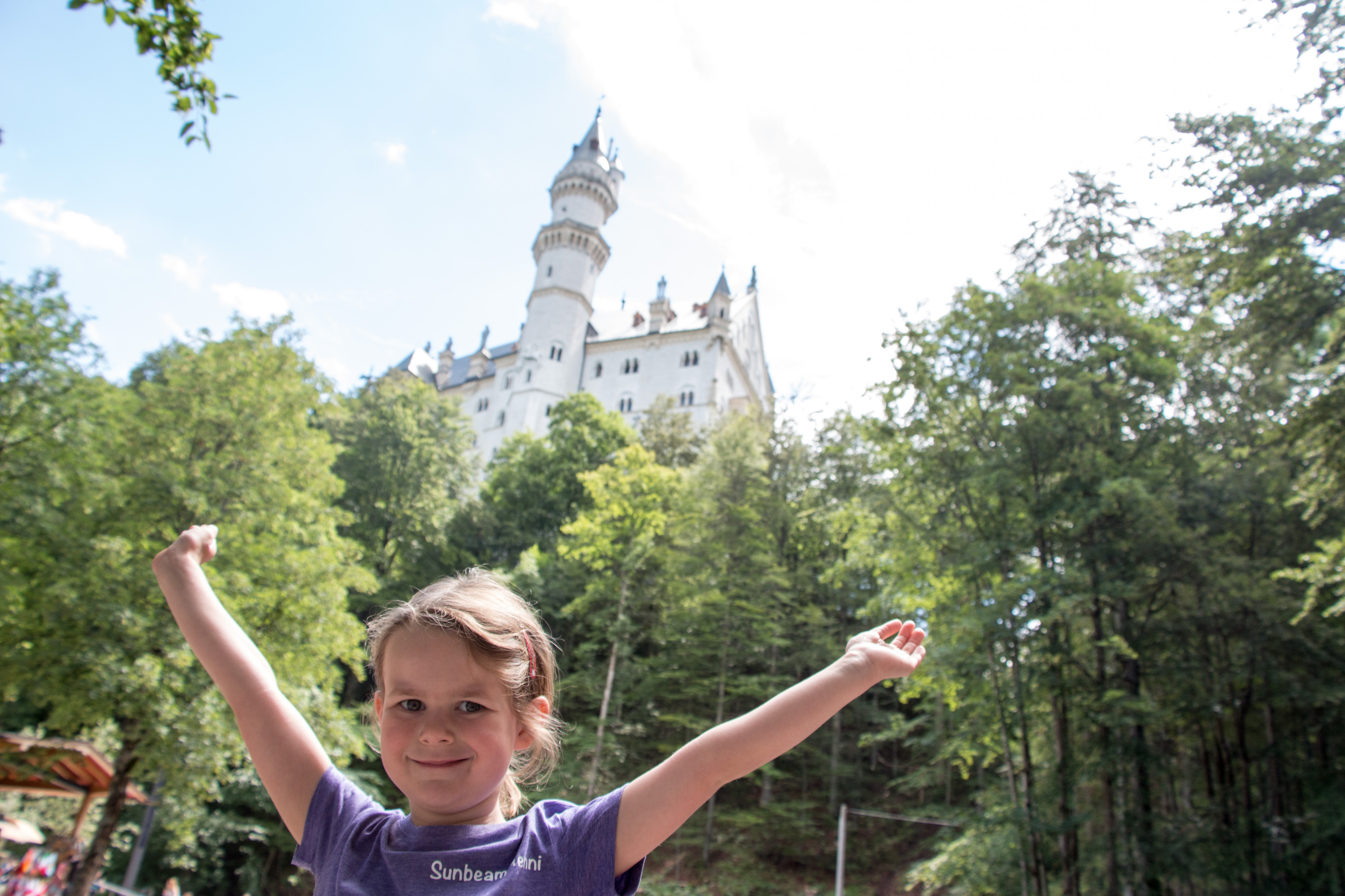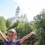 Heute war es endlich so weit. Der Tag auf den Josi schon die ganze Zeit gewartet hat. Für heute stand Neuschwanstein auf unserem dem Programm. Und so fuhren wir am frühen Morgen wiedermal in Richtung Deutschland. Das Wetter war für unser Vorhaben perfekt, Sonnenschein und ca. 21 °C. Das schienen aber auch alle anderer Touristen der Region bemerkt zu haben und so war es an den Ticketschaltern (mit Vorreservierung) recht voll. Dennoch hatten wir Glück und Grit konnte mit den Mädels eine Kutsche für die Fahrt nach oben „erstehen“. Die Kinder durften mit auf dem Kutschbock sitzten und so hatte auch der Kutscher eine nette Unterhaltung bis zur Ankunft kurz unterhalb des Schlosses.