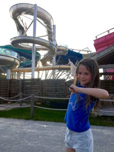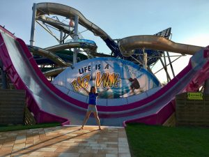 Nach dem Packen der Badeutensilien machten wir uns auf den Weg zum Bad. Dort gab es eine große Auswahl an Bademöglichkeiten mit Strömungskanal, Whirlpools, Höhlen und so weiter. Wir wollten aber zuerst auf die vielen Rutschen und auch die jüngste Attraktion die „Big Wave“!