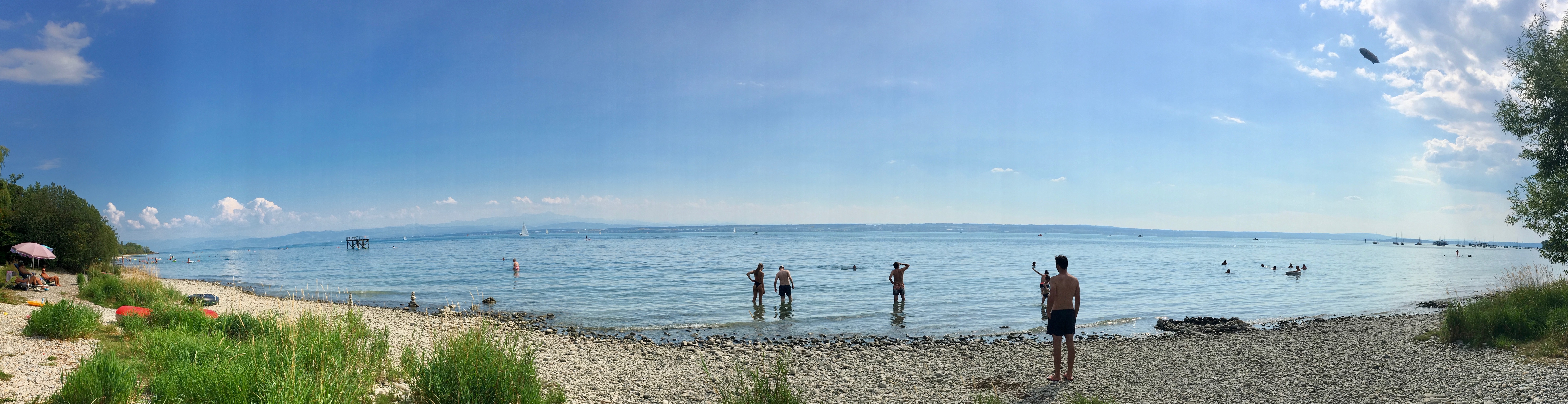 Heute hat für uns der Sommer begonnen bei 30° und Sonnenschein haben wir heute den Weg zum Bodensee gefunden. Von unserem Stellplatz in Erding haben wir es unmittelbar vor dem Ablauf der 24 Stunden Limits geschafft loszufahren. 😅 In der Bodenseeregion angekommen vielen uns die Schilder mit „Campingplatz belegt“ auf, die uns im Vorbeifahren an- bzw. auslachten. So kamen in uns die ersten Zweifel auf, ob wir wirklich auf unserem Wunschcampingplatz einen der begehrten Stellplätze zu ergattern können. Von oben betrachtet war es dort sehr gut gefüllt. Als Grit dann aber von der Anmeldung mit einem Lächeln im Gesicht und einem nach oben gerichteten Daumen zurück kam, war der Tag gerettet.👍 Wir hatten den letzten freien Stellplatz abbekommen und die WoMo-Fahrer die hinter uns standen mussten umdrehen und weiter suchen. Noch mal Glück gehabt! Wir stehen jetzt direkt an der Campingplatz-Wirtschaft und dem Sanitärgebäude. Das heißt extrem kurze Wege zu warmem Essen und zu den Duschen, perfekt!